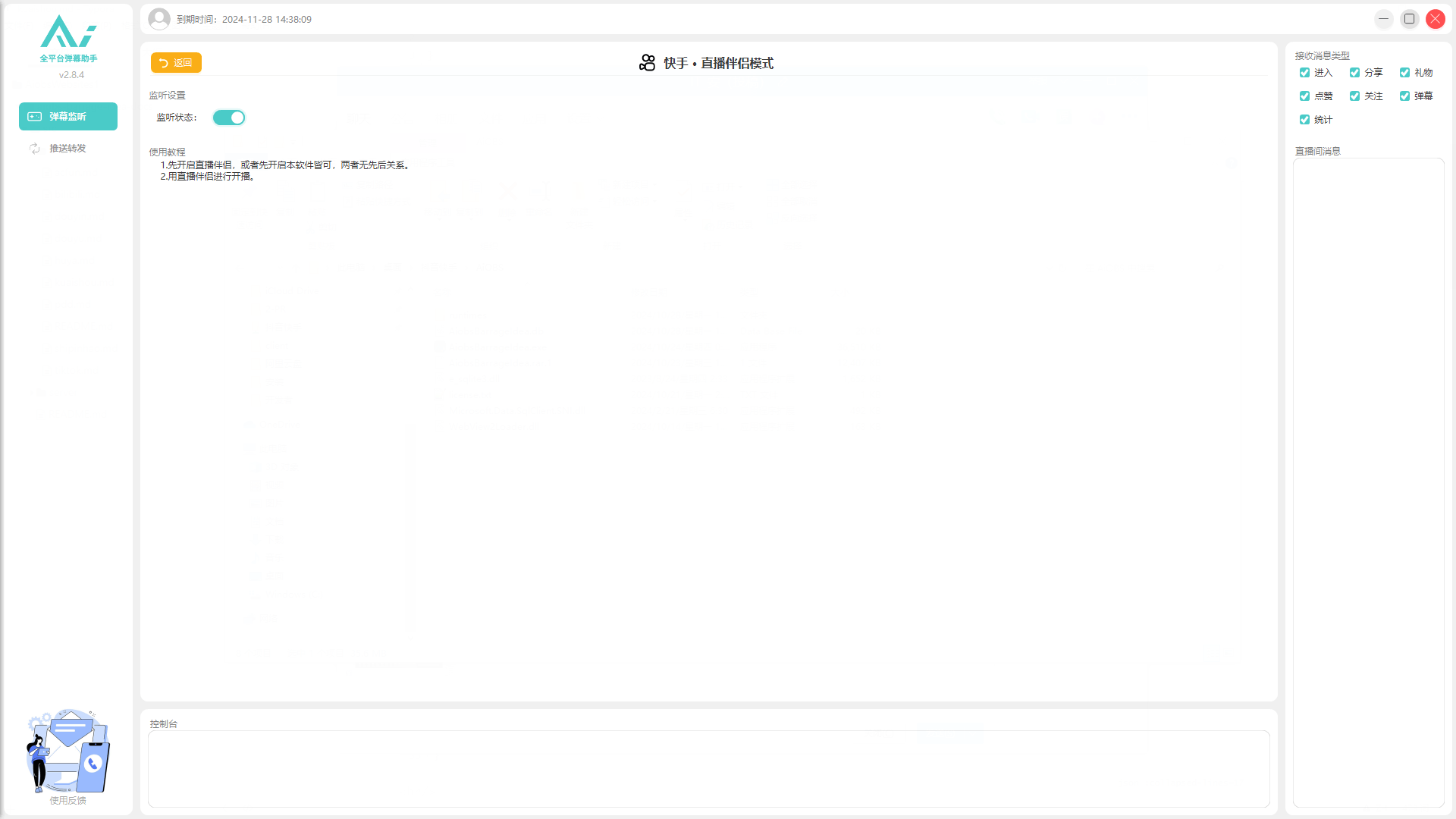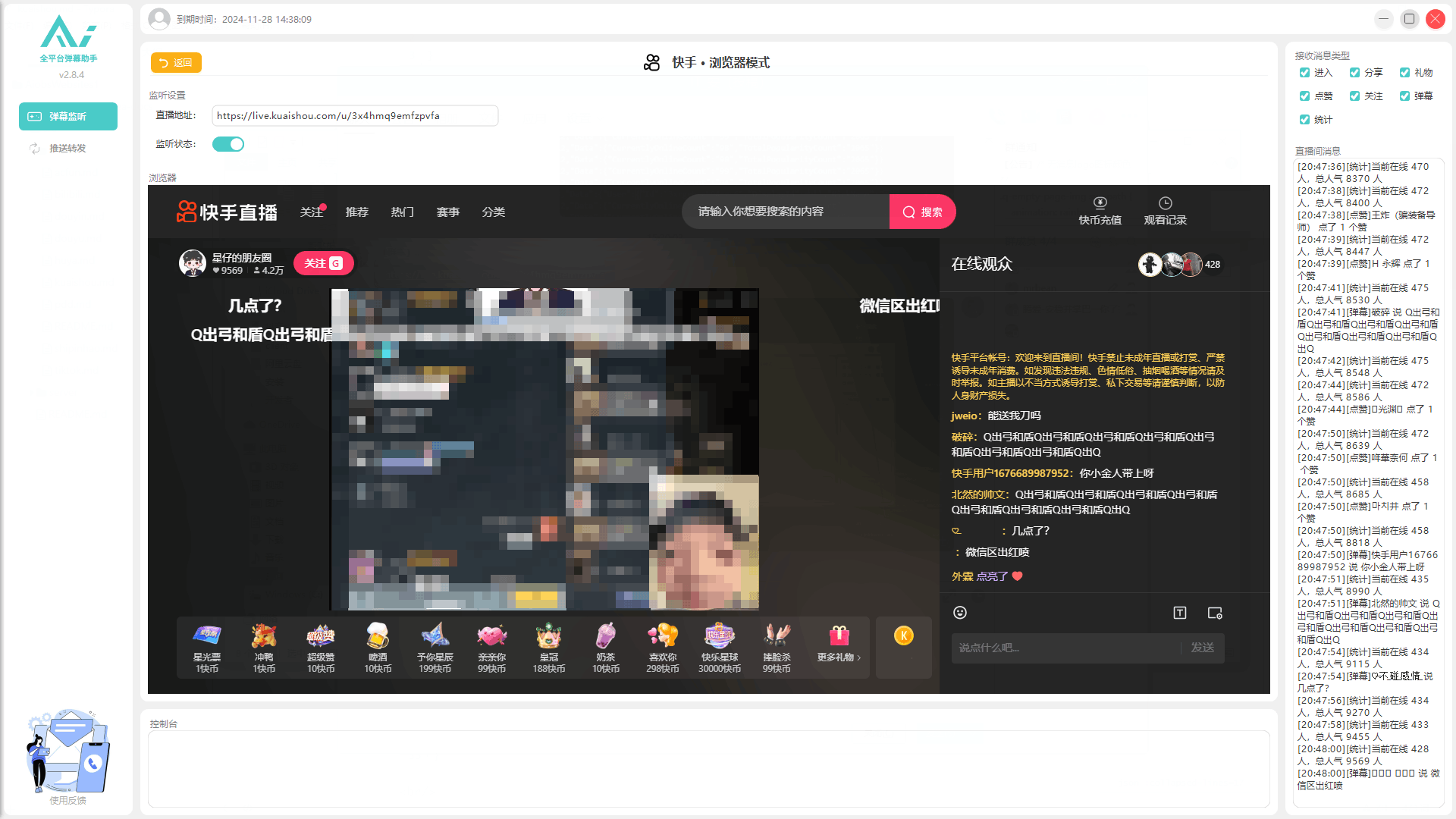 Webview的部分手动选择你原本想监听的直播间试试看,如果还是不行,就暂时没有办法监听他人直播间了,如果只是监听自己的可以选择 直播伴侣模式 试试看